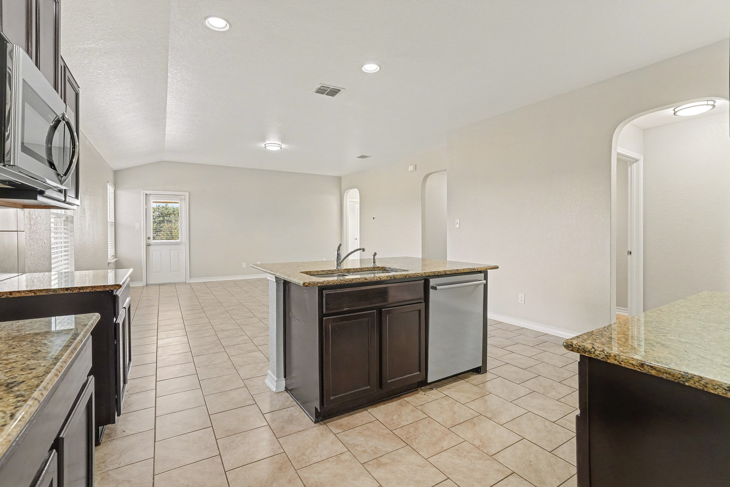 Thoughtful features such as tile flooring and an open layout provide a comfortable foundation for daily routines throughout this 3-bedroom, 2-bath home. The main living and dining area connects easily to the kitchen, creating a practical flow for gathering, meals, and relaxation. Neutral finishes and recessed lighting keep the space feeling balanced and easy to personalize. The kitchen offers generous cabinetry, ample counter space, and a central island with an integrated sink and dishwasher to support everyday use. A built-in microwave adds convenience, while the layout allows for efficient movement and storage. From the dining area, a sliding door opens to a covered patio, giving you a simple way to enjoy fresh air or extend your living space outdoors. The backyard provides additional room for casual activities or quiet downtime. All three bedrooms are positioned to support privacy and flexibility, with two full baths that serve both daily needs and guests. A two-car garage adds secure parking along with extra room for storage or hobbies, helping keep shared spaces organized. Set within San Antonio’s 78245 area, this location places you close to grocery options like H E B Plus and Sprouts, as well as everyday shopping at nearby retail centers. Parks such as Heritage Duck Pond Park and the Leon Creek Greenway offer space for walking and outdoor recreation, while a variety of local restaurants and cafes are just a short drive away, making daily errands and leisure time easy to balance. *Our homes come as-is with all essentials in working order. Want upgrades? Request it through the Belong app, and our trusted pros will take care of the rest!