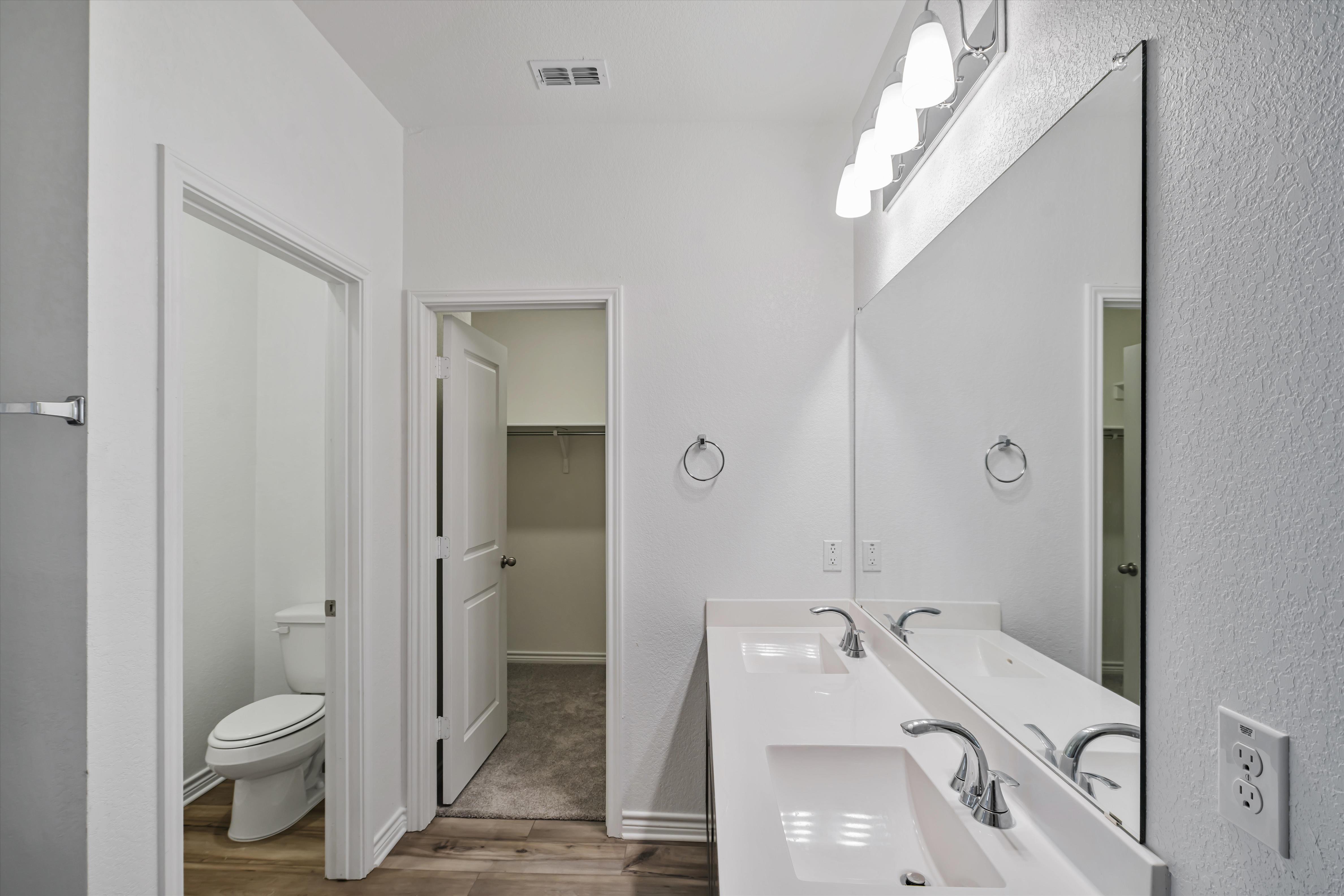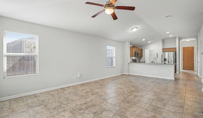 Come live in this beautifully crafted 3-bedroom, 2-bathroom home spanning 1,675 square feet in a serene, newly developed neighborhood in San Antonio, TX. Thoughtfully designed for both comfort and sophistication, it features elegant hardwood floors, modern amenities, and tasteful finishes throughout. Nine-foot ceilings on the first floor create an airy atmosphere. Woodmont Dakota shaker-style 42-inch upper cabinets and a chic Daltile tile backsplash adorn the kitchen. Silestone Miami White countertops and an extended breakfast bar complete this inviting culinary space. Meanwhile, a bonus room offers versatility, making it ideal as a TV room or studio to suit your lifestyle. Step outside to an expansive backyard where the absence of rear neighbors grants privacy and uninterrupted scenic views. Automatic sprinklers keeps the garden effortlessly vibrant. Additional features include a security system with motion detectors and alarm for peace of mind, along with smart home integrations that elevate your living experience. Located in a safe neighborhood known for excellent schools and proximity to public transit and essential services, this home is as practical as it is beautiful. Community amenities include a pool, picnic pavilion, and playground. The pet-friendly policies welcome up to two cats to join you in this lovely space. *Our homes come as-is with all essentials in working order. Want upgrades? Request it through the Belong app, and our trusted pros will take care of the rest!