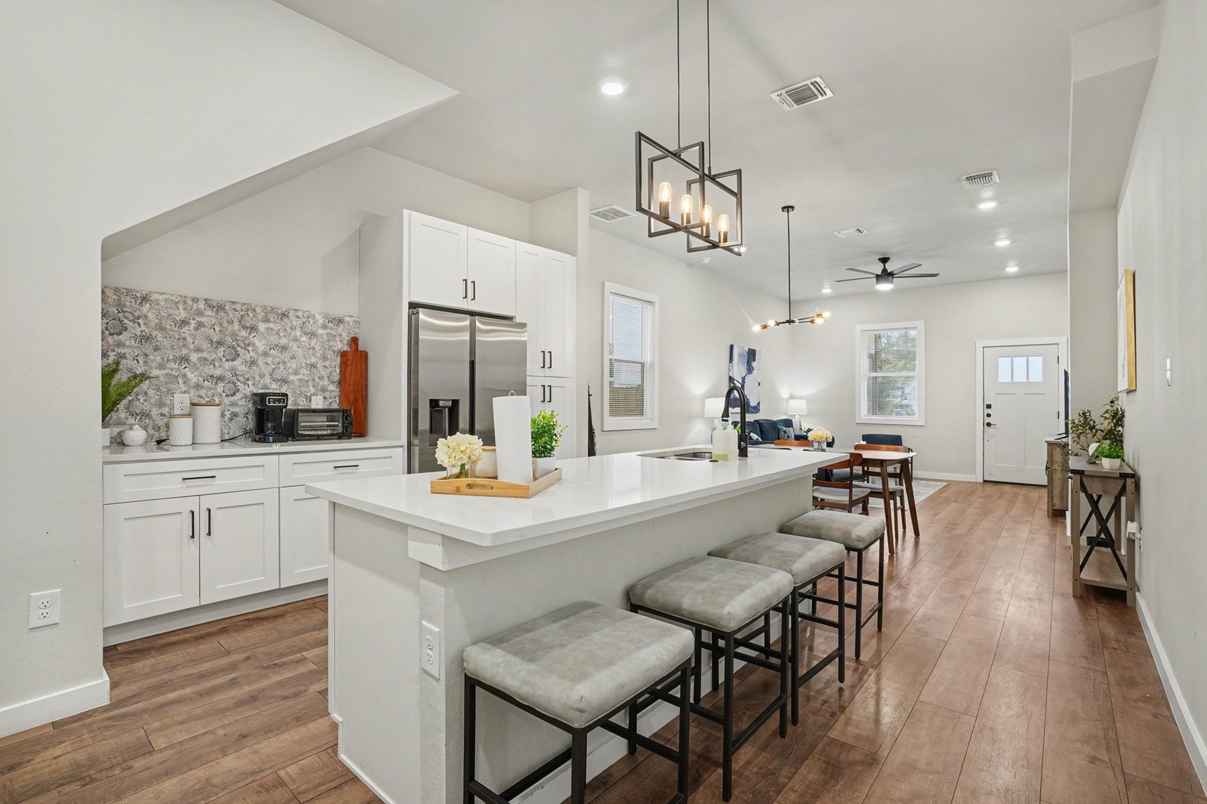 Bright, welcoming, and thoughtfully laid out, this 3-bedroom, 3-bath home brings together high vaulted ceilings and an open main living area that feels airy and bright. Natural light moves easily through the space, while a digital thermostat helps keep everyday living comfortable year-round. The kitchen anchors the heart of the home with clean lines, ample cabinetry, stainless appliances, and a generous island that invites casual meals or conversation while you cook. Nearby living and dining areas flow naturally together, offering flexible space for relaxed evenings, shared meals, or hosting friends. Each bedroom enjoys convenient access to a full bath, giving everyone their own sense of privacy and ease. Outside your door, Eastside San Antonio places you close to some of the city’s most loved destinations. Downtown, the River Walk, and the Alamo are all a short drive away, while the Pearl District offers local dining, coffee shops, and weekend farmers markets. Everyday errands stay simple with nearby grocery options like H-E-B, and outdoor time is easy to enjoy at Hemisfair’s Yanaguana Garden or nearby neighborhood parks. This location blends city energy with local charm, giving you plenty to explore close to home. *Our homes come as-is with all essentials in working order. Want upgrades? Request it through the Belong app, and our trusted pros will take care of the rest!