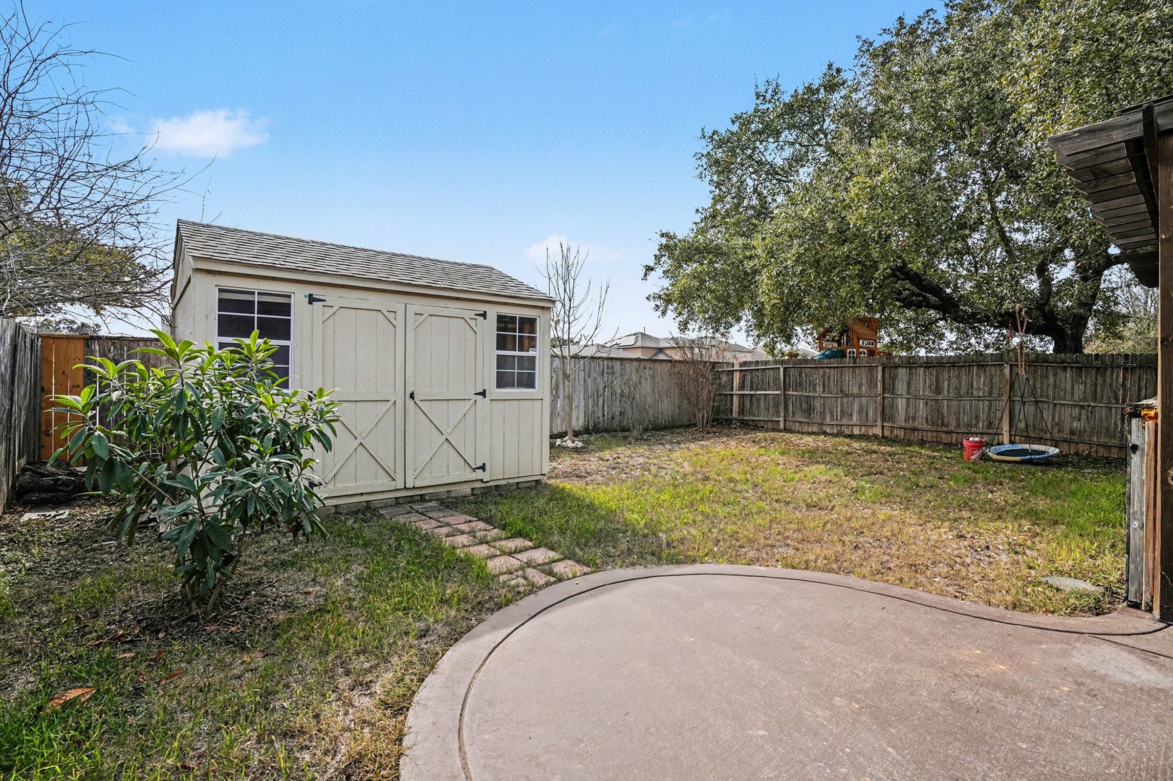 Strong indoor-to-outdoor living defines this well-designed 3-bedroom, 2-bath home, where a bright dining area opens directly to a covered patio built for year-round enjoyment. Rooms flow with practical layouts, and generous windows brighten living areas while providing glimpses of the backyard retreat. Your primary suite offers quiet comfort along with an ensuite bath featuring a separate tub and shower, giving you options for unwinding after a long day. Bedrooms beyond the primary are well-sized and ready to adapt to your lifestyle needs, whether that’s a guest room, home office, or creative nook. Outdoors, enjoy a covered patio that extends your living space into the fresh air. A built-in grilling area under shelter keeps your cookouts going rain or shine, and yard space beyond gives you room for gardening, play, or pets to roam. Storage is made easy with a backyard shed that helps keep outdoor gear organized and accessible. Located in San Antonio’s welcoming 78253 area, you’re within a short drive of everyday essentials such as H-E-B and Sprouts Farmers Market for groceries, plus a variety of local eateries and cafes to explore. Nearby parks and recreation spots invite weekend strolls, while easy access to Loop 1604 and major thoroughfares connects you to the wider city and regional favorites for shopping and entertainment. *Our homes come as-is with all essentials in working order. Want upgrades? Request it through the Belong app, and our trusted pros will take care of the rest.