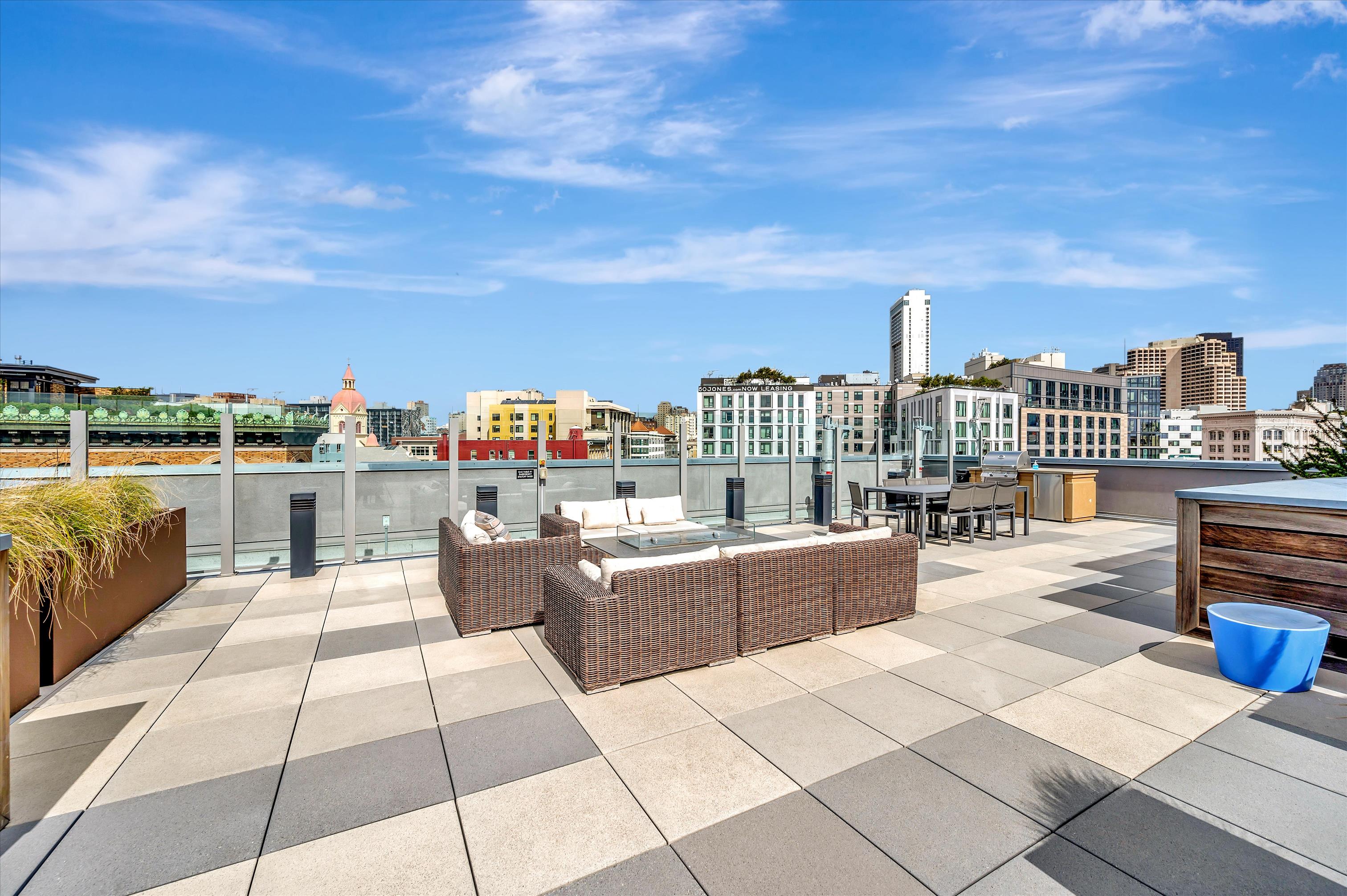 Discover the vibrant lifestyle awaiting you in this charming 2-bedroom, 2-bathroom San Francisco condo! As you step into the spacious living room, tall windows flood the space with natural light, creating a welcoming atmosphere. The kitchen seamlessly flows into the living room, making entertaining a breeze. Well-appointed and open, it invites culinary adventures with its modern appliances and ample countertop space. With the allowance for two pets, furry friends are more than welcome here. Plus, the convenience of a stacked washer and dryer concealed in a laundry closet adds a touch of practicality to your daily routine. But the perks don't end there! This condo offers a plethora of communal amenities to enhance your living experience. From package lockers to a dog run and even a dog wash station, not to mention a rooftop deck complete with a BBQ lounge, every need is catered to. Don't forget the bike storage, perfect for those who love to explore the city on two wheels! Conveniently located near restaurants, theaters, public transit, and tech companies, this condo offers easy access to everything you need. With the Civic Center and Powell St. Bart and Muni stations nearby, commuting is easy, and the building's proximity to major bus lines and the F line ensures that adventure is always just steps away!
