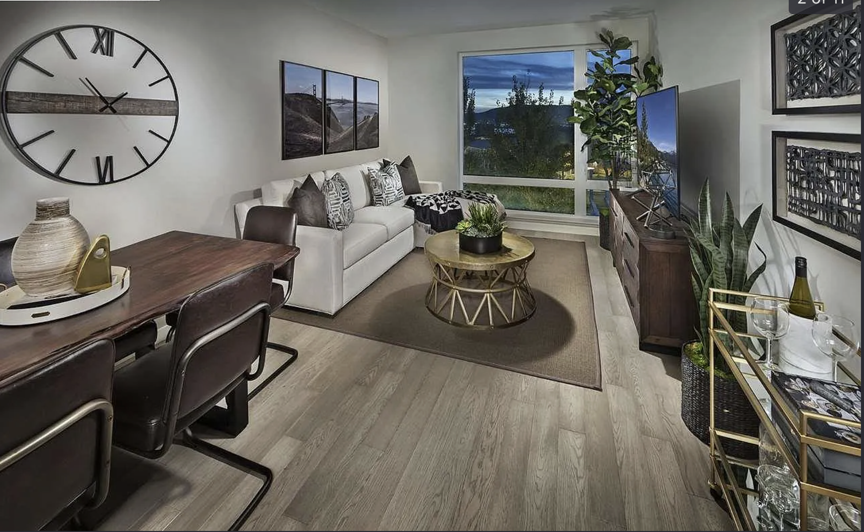 Positioned along the San Francisco waterfront, this 2-bedroom, 2-bath home offers refined interiors and sweeping views of the Bay. Painted walls and wide-plank flooring create a crisp, modern backdrop, while expansive windows in the living room frame a serene park view and invite natural light deep into the space. The living and dining area unfolds in an open layout that feels generous and composed. Clean lines, recessed lighting, and uninterrupted sightlines toward the kitchen enhance both everyday comfort and entertaining potential. From here, you can appreciate the calm of the surrounding greenery alongside glimpses of the water beyond. The kitchen is thoughtfully appointed with a five-burner gas range, an oven, a refrigerator, a microwave, and a dishwasher. Sleek cabinetry, under-cabinet lighting, and expansive counters provide both style and function. A washer and dryer are also included, adding practical ease to your routine. Both bedrooms are well-proportioned, complemented by two full baths. A 1-car garage offers secure parking and additional convenience. Located in the Bayview neighborhood near India Basin Shoreline Park and Heron’s Head Park, you will enjoy access to waterfront trails and open space. Third Street’s Muni T-Line connects you to Mission Bay, Oracle Park, and downtown, while nearby grocery options and local cafes add everyday accessibility. *Our homes come as-is with all essentials in working order. Want upgrades? Request it through the Belong app, and our trusted pros will take care of the rest!