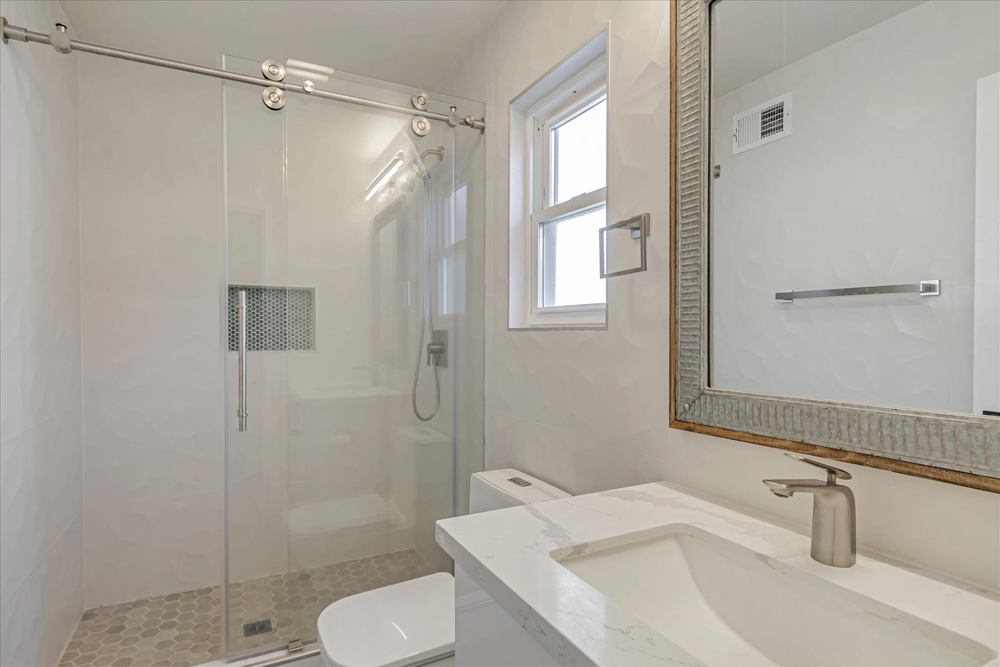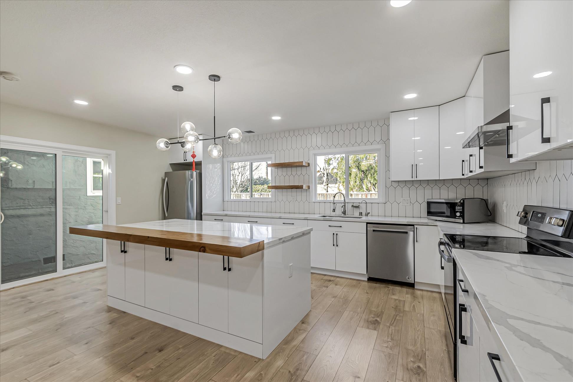Create vibrant memories with your loved ones in this beautifully updated 4-bedroom, 2-bathroom single-family home in the highly sought-after Almaden Valley neighborhood. Spanning 1,828 square feet, this home combines contemporary elegance with thoughtful design to offer a bright and spacious retreat. The open floor plan begins with a formal living room featuring a sleek black tile fireplace accented by glittering fire glass. Adjacent is the great room, which includes a stylish dining area and a gourmet kitchen. Designed with both form and function in mind, the kitchen showcases quartz countertops, white cabinetry, a white picket subway tile backsplash, matte black and gold hardware, stainless steel appliances, and an oversized center island with bar seating. Throughout the home, brand-new flooring and recessed lighting enhance its modern appeal. The primary bedroom offers a serene space with an updated ensuite bathroom, complete with a frameless glass shower door, a rain shower head, and custom tilework. Outside, the backyard transforms into an oasis, featuring a footpath that meanders through lush landscaping, seating areas, raised garden beds, and mature trees—a perfect backdrop for relaxing or entertaining. Solar power system is also installed, which lets you enjoy huge savings on your electric bill! Located near top-rated Almaden schools and Quicksilver Park, with its hiking and biking trails, this home offers convenience and natural beauty in equal measure. Pet-friendly policies welcome up to two small or medium cats or dogs (30 lbs. max weight), with a $50 monthly fee per pet. *Our homes come as-is with all essentials in working order. Want upgrades? Request it through the Belong app, and our trusted pros will take care of the rest! *Fireplace is for decorative use only and cannot be used without consent from Belong.