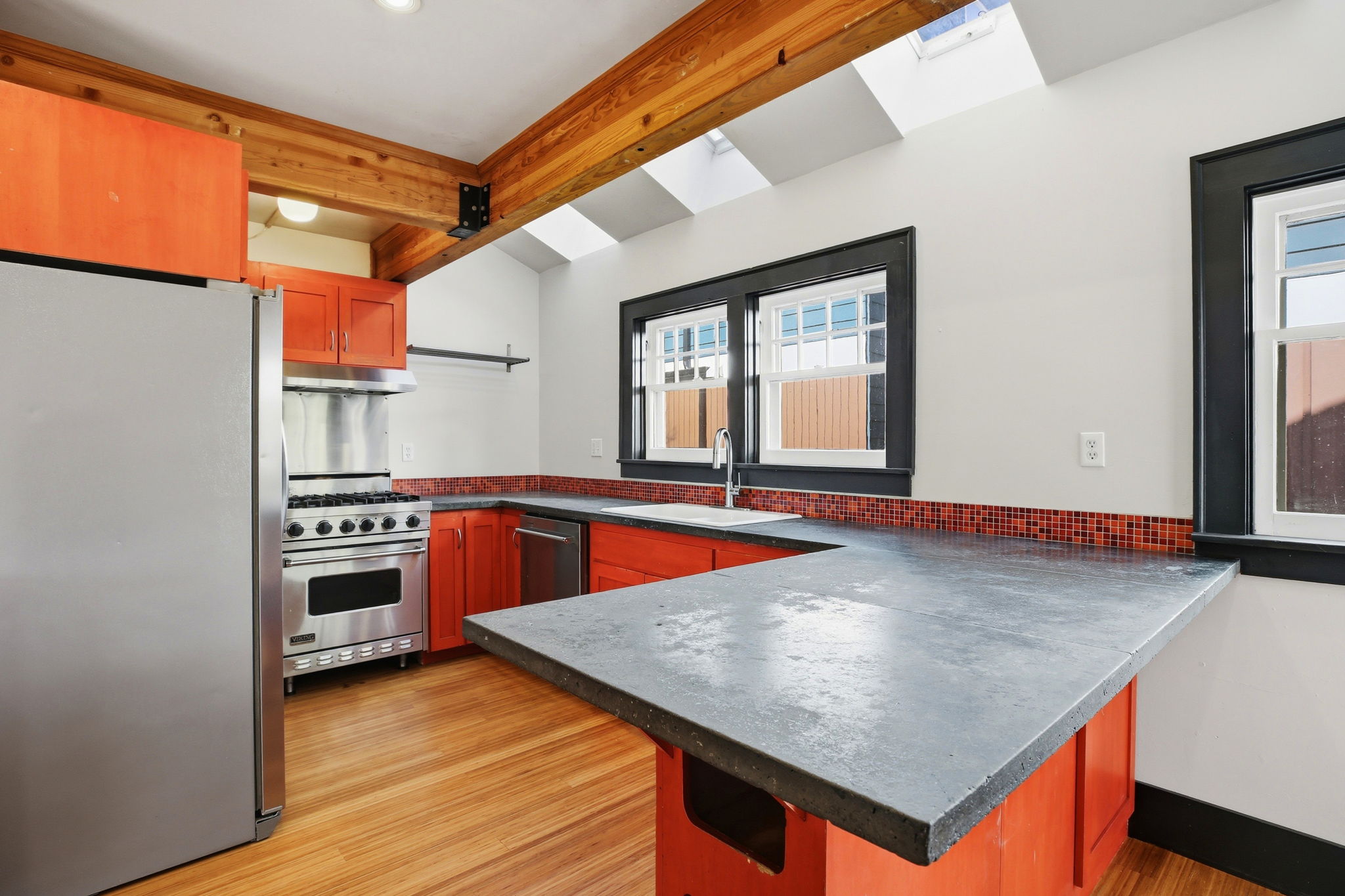 A flexible layout and multiple living areas support a wide range of uses across this 4-bedroom, 2-bath home. Hardwood floors extend throughout the main spaces, while an arched opening defines a natural transition between the living and dining areas. Built-in shelving surrounds the fireplace, adding storage and a focal point. Meanwhile, natural light moves across the floors through well-placed windows, giving the space a steady, comfortable rhythm throughout the day. In the kitchen, red cabinetry contrasts with dark countertops and stainless steel appliances to create a beautiful and practical workspace. Multiple windows and overhead skylights bring in additional light, while the layout allows you to move easily between prep, cooking, and cleanup. Four bedrooms, a bonus room, and two baths provide flexibility to organize sleeping areas, workspaces, or guest rooms as needed. Pets are welcome, offering a straightforward option for those planning to bring animals along. Located in Wallingford, you are near Gas Works Park, Woodland Park Zoo, and Green Lake Park for outdoor time. Grocery options include QFC and Safeway, while nearby cafés and restaurants line N 45th Street. The University of Washington, public transit, and a direct commute into downtown Seattle are all within easy reach. *Fireplace is for decorative use only and cannot be used without consent from Belong. *Zillow deposit for this Belong home includes the $500 pet fee in case of pets. *Our homes come as-is with all essentials in working order. Want upgrades? Request it through the Belong app, and our trusted pros will take care of the rest!