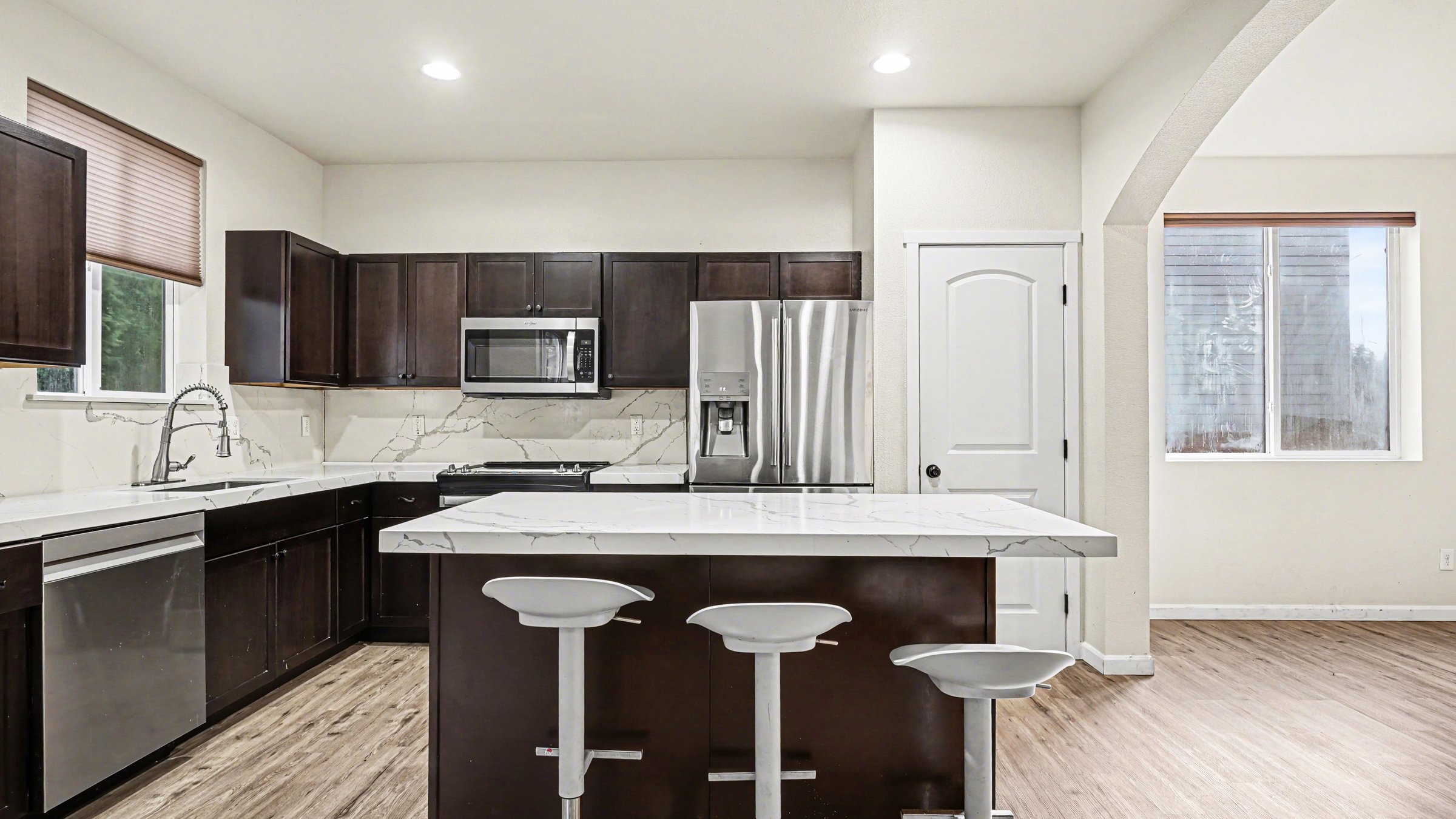 Four bedrooms, 2.5 baths, and a welcoming community setting come together in this vibrant Tacoma home that offers space, comfort, and everyday convenience. Two pets are welcome here as well, giving everyone in your household a place to settle in. The living area feels open and inviting, complete with ceiling fans and easy flow into the dining space. Natural light filters in through multiple windows, while the layout connects seamlessly to the kitchen, making it easy to gather, host, or simply enjoy a quiet evening at home. In the kitchen, you’ll find sleek countertops, dark cabinetry, stainless steel appliances, and a spacious island with bar seating that encourages casual meals and conversation. Recessed lighting keeps the space bright, and the nearby dining area offers a comfortable setting for sit-down dinners or weekend brunch. With in-home laundry, a dedicated water heater, and an attached 2-car garage, you have the practical features that make daily routines run smoothly. Located in the Frederickson area of Tacoma, you’re close to Fred Meyer, Safeway, and the Tacoma Mall for shopping. Spanaway Park and Bresemann Forest offer outdoor recreation, while Pacific Avenue and nearby SR 512 provide easy access to dining, cafes, and commuting routes. *Our homes come as-is with all essentials in working order. Want upgrades? Request it through the Belong app, and our trusted pros will take care of the rest!