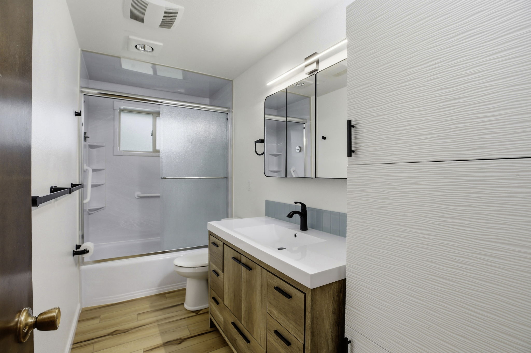 This charming single-story ranch at 8515 Phillips Road Southwest offers a blend of traditional style and modern updates within a well-maintained 1066 square-foot layout. Set on a lush lot with mature trees and professional landscaping, the home features a spacious, partly fenced backyard ideal for outdoor enjoyment and privacy. Inside, three bedrooms showcase clean, freshly painted walls and gleaming hardwood floors, while large windows fill the rooms with natural light. Built-in shelving in one bedroom adds practical storage and character. The updated bathroom highlights a walk-in shower with sliding glass door, modern vanity, and sleek fixtures that elevate daily routines. An attached single-car garage provides convenient parking, and the in-unit laundry room comes complete with a washer and dryer, enhancing everyday functionality. The exterior's wood siding and neat concrete walkways complement the inviting curb appeal, while the asphalt driveway leads to the garage with easy access. Nestled in a quiet Tacoma neighborhood, this home offers a serene lifestyle with nearby conveniences. Living here means embracing comfort and practicality without compromising on charm. *Our homes come as-is with all essentials in working order. Want upgrades? Request it through the Belong app, and our trusted pros will take care of the rest!