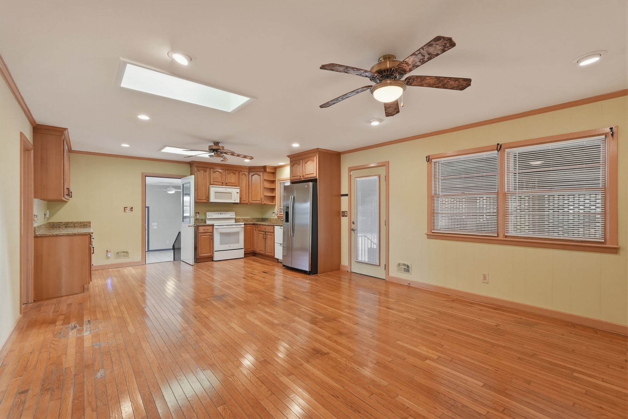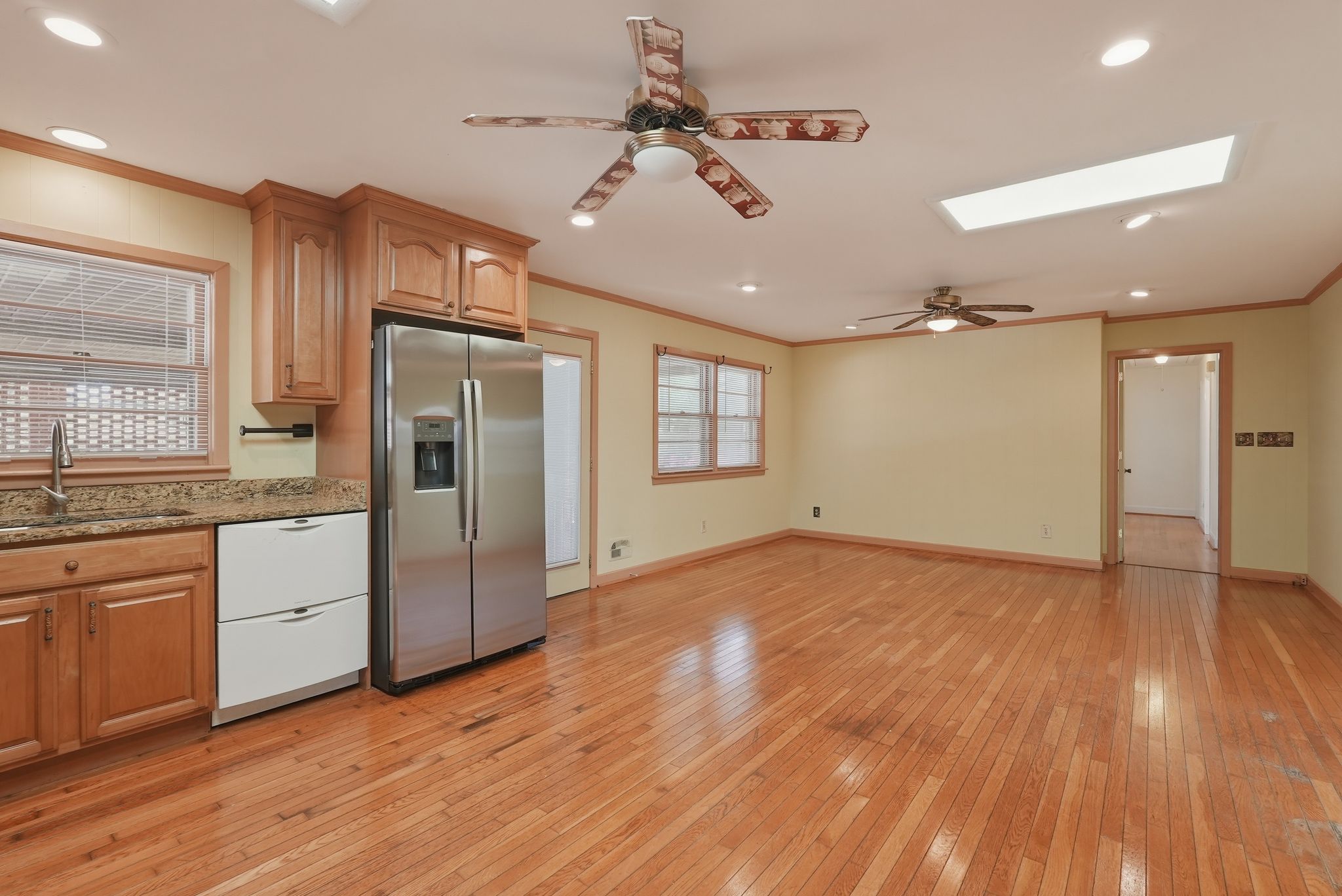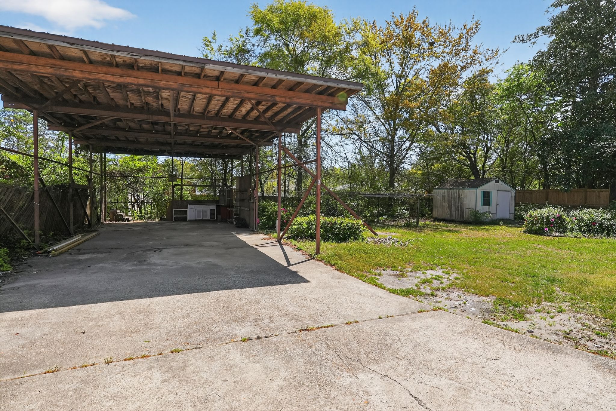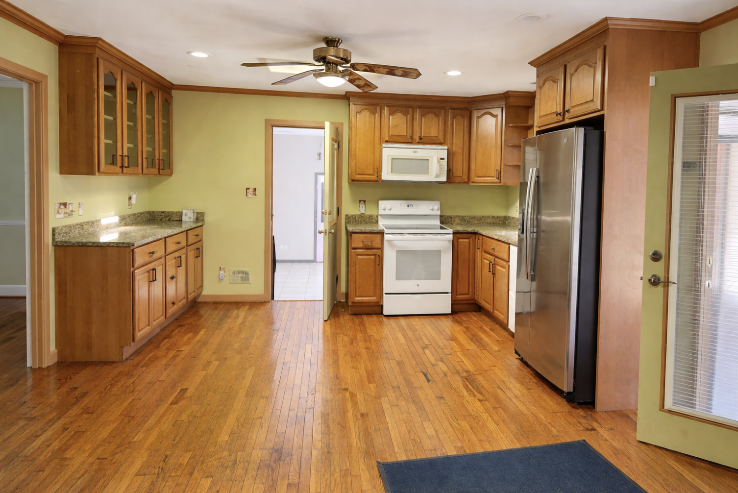 Set on a 20,000-square-foot lot in Lincoln Forest, this refurbished, move-in ready 4-bedroom, 3-bath home offers 2,376 square feet of total heated living space, including a 1,800-square-foot main house and a 576-square-foot multifunction room designed for flexible use. A short set of three steps leads up to the main house. Inside, wood flooring carries throughout the interior. The front living room connects naturally to the dining area, which sits beside the kitchen. Just off the kitchen, the family room continues the layout with an easy, connected flow. Two skylights and two ceiling fans support airflow and bring in natural light across these shared spaces. Within the kitchen, cabinets are outfitted with easy-slide shelves and lazy Susans for accessible storage, alongside an induction stovetop and oven, microwave, two dishwashers, and a new refrigerator. Continuing through the home, three bedrooms each include ceiling fans. Two full bathrooms include one with a bathtub, toilet, and sink, and another with a shower, toilet, and sink. A dedicated air conditioning system serves the main house, with a crawl space for plumbing and an attic for electrical access. Stepping down to the ground level, the 576-square-foot multifunction room offers a separate living zone that has been used as a primary bedroom, home occupation space, or efficiency apartment. Tile flooring and high ceilings define the space, while two ceiling fans, three high-set windows, and a large picture window bring in natural light that can be adjusted with Venetian blinds. This area includes its own air conditioning system, a full bathroom with toilet, shower, vanity, and built-in shelves, a walk-in closet, and cabinetry with easy-slide shelves, a sink, and space for a microwave. One interior door connects to the main house, while two exterior doors provide direct access, and the layout remains wheelchair accessible. Heading outside, the brick veneer exterior frames both the front and backyard, where mature azaleas and trees fill the space. A detached tool shed and an older RV port allow room for a boat or multiple vehicles. Alongside the home, a two-car carport is open in layout, yet enclosed and roofed for coverage. The covered utility area positioned between the carport and the house includes a sink, an old cabinet, and washer and dryer hookups. Two A/C units and a new air duct system support airflow and efficiency, while refitted window seals, Venetian blinds, and four doors with built-in blinds add privacy and simplify maintenance throughout. Westfield Mall, groceries, and a variety of businesses are within walking distance, while Empie Park, schools, universities, and the airport are all easily accessible from this location. *Two pets allowed. Zillow deposit for this Belong home includes the $500 pet fee in case of pets. *Our homes come as-is with all essentials in working order. Want upgrades? Request it through the Belong app, and our trusted pros will take care of the rest!